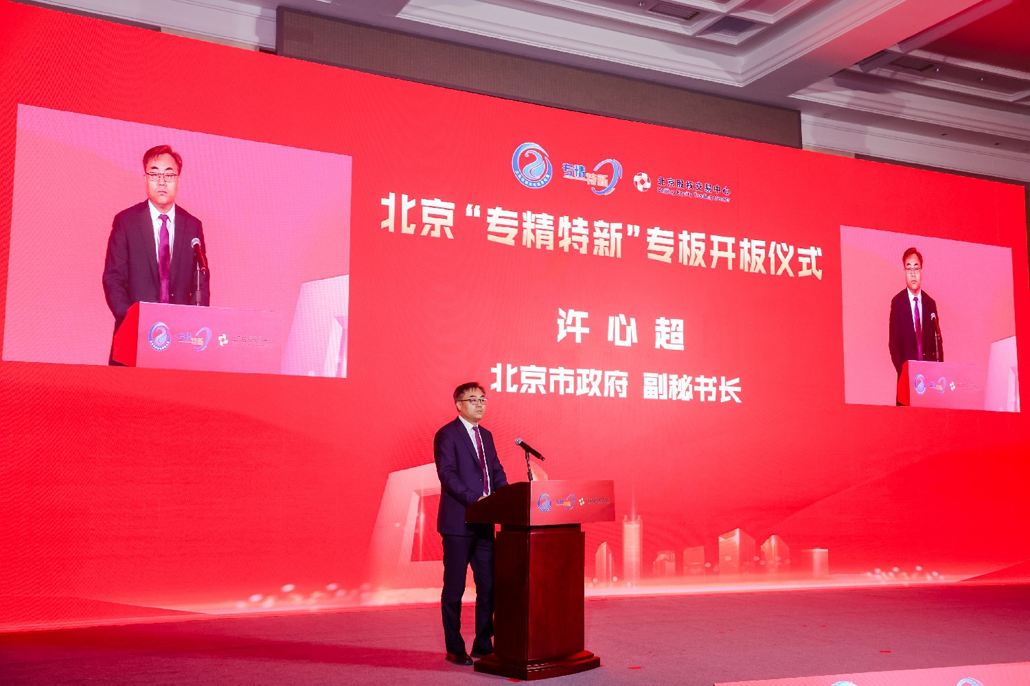 北京市政府副秘书长许心超,工业和信息化部中小企业局副局长牟淑慧,中国证券监督管理委员会市场监管二部副主任竺煜,北京市经济和信息化局党组书记、局长姜广智出席仪式并致辞。