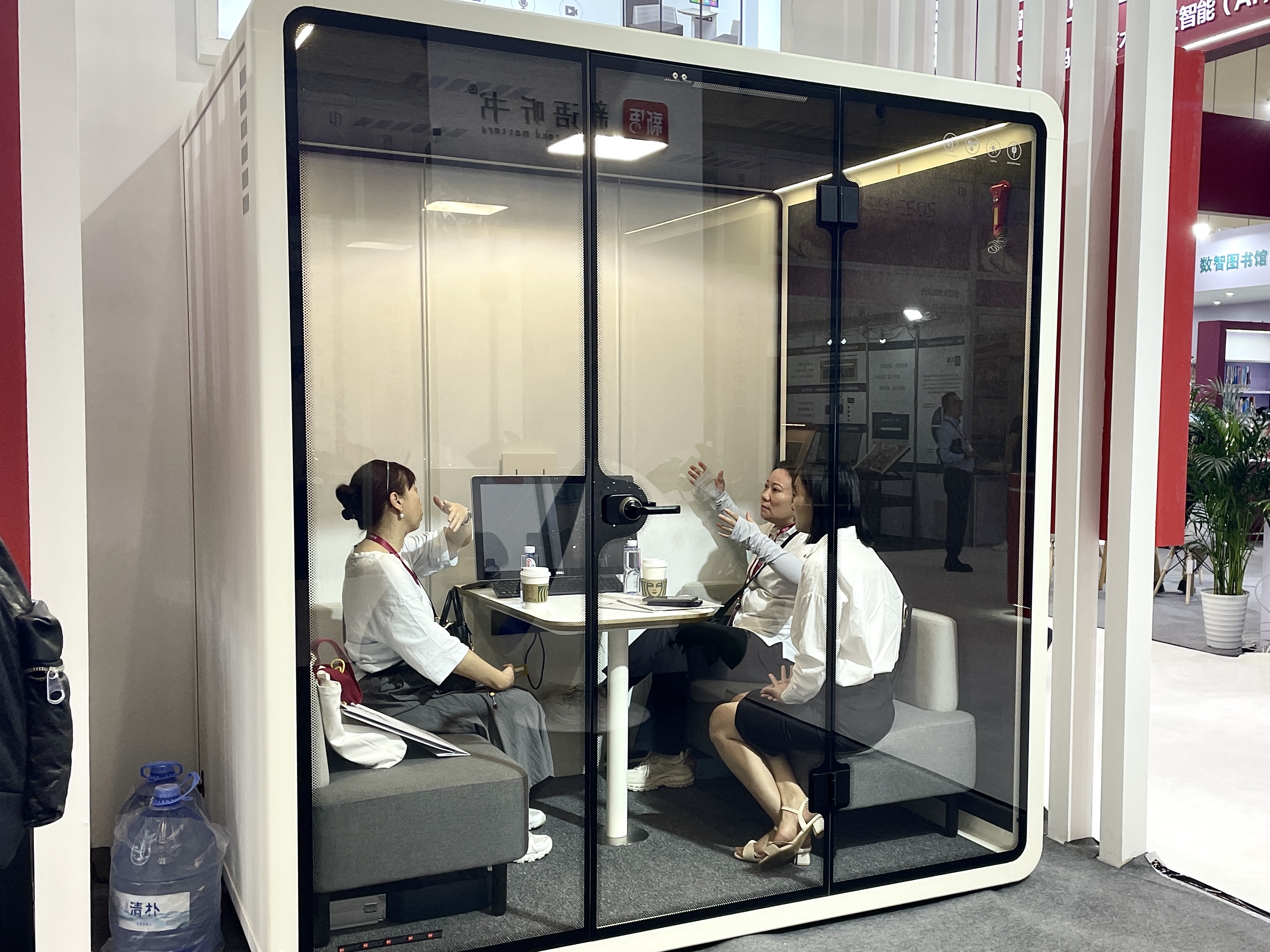 新语听书研讨舱是一款专门为图书馆打造的灵活可移动的多功能学习空间,可以为读者提供一个舒适且独立的聆听空间、研讨环境以及学习环境。